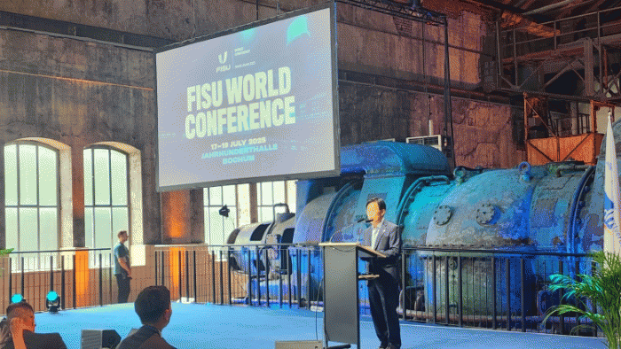 À̹ø ¹ßÇ¥´Â ±¹Á¦´ëÇнºÆ÷Ã÷¿¬¸Í(FISU) ȸÀå´ÜÀ» ºñ·ÔÇØ Àü ¼¼°è ´ëÇÐ ½ºÆ÷Ã÷ °ü°èÀÚ ¹× ÇÐÀÚµéÀÌ Âü¼®ÇÑ °¡¿îµ¥, 2027 ÃæÃ» Çмú´ëȸ ÁÖ°ü ´ëÇÐÀ¸·Î ¼±Á¤µÈ ´Ü±¹´ëÇб³ÀÇ ÀåÁö¼® ±³¼ö(2027 ÃæÃ» FISU Çмú´ëȸ °øµ¿Á¶Á÷À§¿øÀå)°¡ ÃæÃ» Çмú´ëȸÀÇ ºñÀü°ú ÁÖ¿ä °èȹÀ» ¹ßÇ¥Çϸç, È£ÀÀÀ» ¾ò¾ú´Ù.