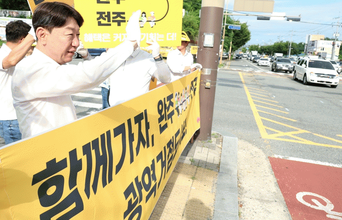 Ãâ±Ù±æ Ä·ÆäÀο¡ Âü¿©ÇÑ ¿ì ½ÃÀå°ú ¹Î°£´ÜüµéÀº ¡®ÇÔ²²°¡ÀÚ, ¿ÏÁÖ¡¤ÀüÁÖ ¿Ã¸²ÇÈ °³ÃÖµµ½Ã·Î!¡¯¿Í ¡®ÇÔ²²°¡ÀÚ ¿ÏÁÖ¡¤ÀüÁÖ ±¤¿ª°ÅÁ¡µµ½Ã·Î¡¯ µîÀÇ ¹®±¸°¡ ÀûÈù ÇÇÄϰú Çö¼ö¸·À» Ȱ¿ëÇØ ¿À°¡´Â ¿ÏÁÖ¡¤ÀüÁÖ ÁÖ¹ÎÀ» »ó´ë·Î ÅëÇÕÀÇ Çʿ伺À» ¾Ë·È´Ù.