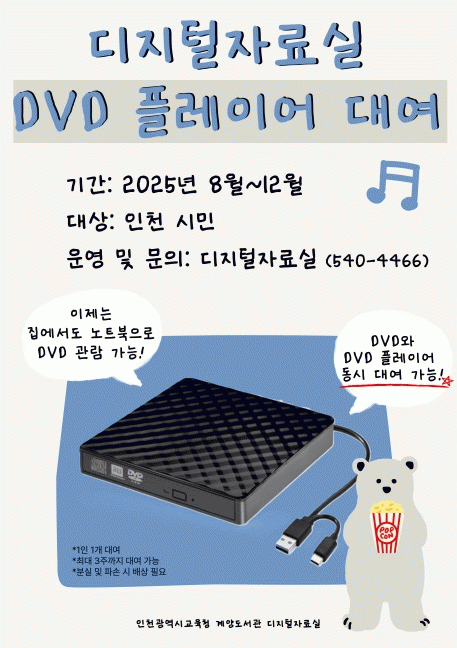 µðÁöÅÐÀÚ·á½Ç¿¡¼ DVD¿Í DVD Ç÷¹À̾ µ¿½Ã¿¡ ´ë¿©ÇÒ ¼ö ÀÖÀ¸¸ç, 1ÀÎ 1°³±îÁö ÃÖ´ë 3ÁÖ°£ ÀÌ¿ë °¡´ÉÇÏ´Ù.