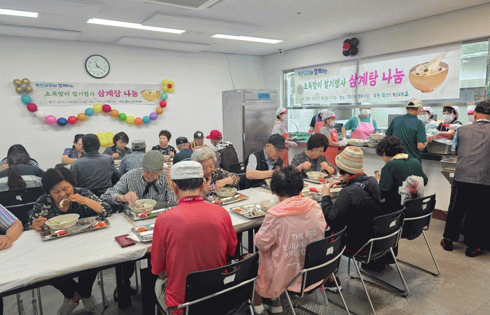 À̹ø Çà»ç´Â °è»ê±³È¸ ÈÄ¿øÀ¸·Î ¾à 250¸íÀÇ ¾î¸£½Å¿¡°Ô »ï°èÅÁ°ú °úÀÏÀ» ´ëÁ¢Çϸç ÁøÇàµÆ°í, ¾î¸£½ÅµéÀº ÁöÇÏ 1Ãþ Çູ½Ä´ç¿¡¼ µû¶æÇÑ º¸¾ç½ÄÀ» ÇÔ²² ³ª´©¸ç ÀÌ¿ô°ú Á¤À» ³ª´³´Ù.