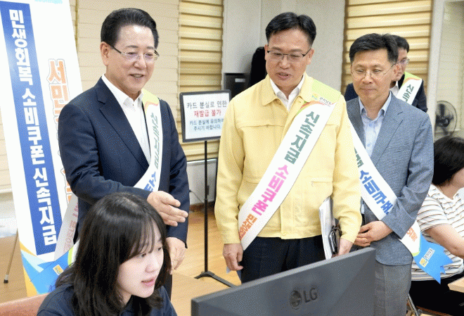 ±è¿µ·Ï Áö»ç´Â ¡°¹Î»ýȸº¹¼ÒºñÄíÆù Áö±ÞÀÌ ½Å¼ÓÇÏ°Ô ¼Ò»ó°øÀΰú ÀÚ¿µ¾÷ÀÚÀÇ ¸ÅÃâ Áõ´ë·Î À̾îÁöµµ·Ï µµ¹ÎµéÀÇ ºü¸¥ ½Åû°ú ¼Òºñ¸¦ ¹Ù¶õ´Ù¡±¸ç ¡°µµ¿¡¼µµ ã¾Æ°¡´Â ¹Î»ýÄíÆù ½Åû ¼ºñ½º µîÀ» ÅëÇÑ ½Å¼ÓÇÑ Áö±ÞÀ¸·Î À̹ø Á¤Ã¥ÀÌ Áö¿ª°æÁ¦ ȸº¹ÀÇ ¸¶Áß¹°ÀÌ µÇµµ·Ï Çϰڴ١±°í ¸»Çß´Ù.