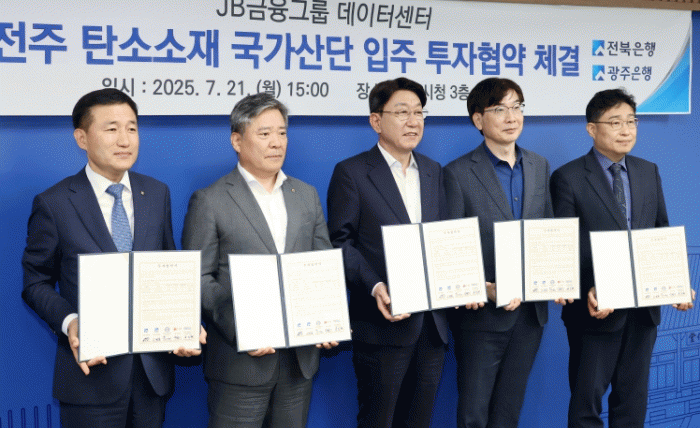 ÀüÁֽô 21ÀÏ ½Ãû 3Ãþ ȸÀǽǿ¡¼ JB±ÝÀ¶±×·ì »êÇÏ ÀüºÏÀºÇà(ÀºÇàÀå ¹éÁ¾ÀÏ)¡¤±¤ÁÖÀºÇà(ÀºÇàÀå °íº´ÀÏ)°ú ÀüÁÖ Åº¼Ò¼ÒÀç ±¹°¡»ê¾÷´ÜÁö ³» JB±ÝÀ¶±×·ì °øµ¿ µ¥ÀÌÅͼ¾ÅÍ °Ç¸³À» À§ÇÑ ÅõÀÚÇù¾àÀ» ü°áÇß´Ù.