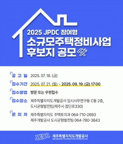 ¶Ç ±Ô¸ð³ª Çü½Ä¿¡ »ó°ü¾øÀÌ Á¦ÁÖµµ ÁÖÅÃÅäÁö°ú(064-710-2693) ¶Ç´Â Á¦ÁÖ°³¹ß°ø»ç µµ½Ã±ÕÇü¹ßÀüÆÀ(064-780-3843)À¸·Î ¼³¸íȸ¸¦ ¿äûÇÏ¸é ¾ðÁ¦µçÁö Á÷Á¢ ¹æ¹®ÇÏ¿© ÀÚ¼¼ÇÑ »ç¾÷ ¾È³»¿Í ÇÔ²² Á¤ºñ»ç¾÷ ÄÁ¼³ÆÃµµ ¹ÞÀ» ¼ö ÀÖ´Ù.
