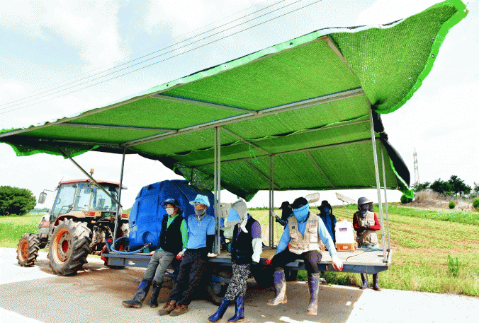 Æ®·¹ÀÏ·¯ À§¿¡´Â ±×´Ã¸·°ú °£ÀÌ ÀÇÀÚ, ¼öºÐ º¸Ãæ¿ë À½·á µîÀ» žÀçÇØ ³óÀÛ¾÷ Àå¼Ò±îÁö À̵¿Çϵµ·Ï ±¸¼ºµÆ´Ù.