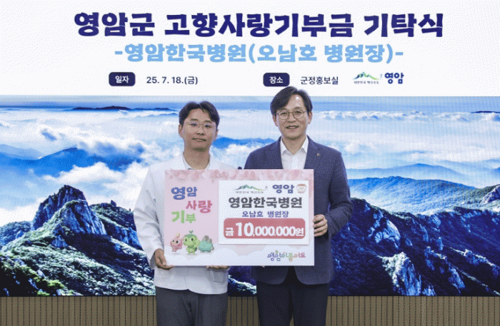 ÀÌ´Þ 18ÀÏ ¿À³²È£ ¿µ¾ÏÇѱ¹º´¿øÀåÀÌ ¿µ¾Ï±º¿¡ °íÇâ»ç¶û±âºÎ±Ý 1,000¸¸¿øÀ» ±âŹÇß´Ù.