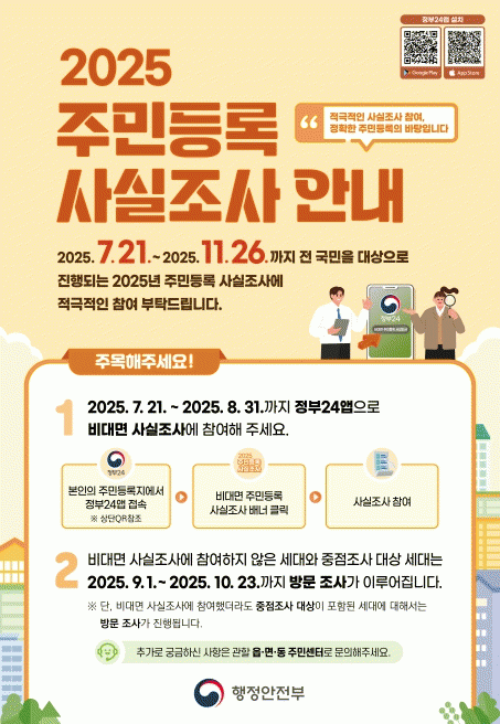 ºñ´ë¸é Á¶»ç Âü¿© ´ë»óÀÚ´Â Áֹεî·ÏÁö¿¡ °ÅÁÖÇϰí ÀÖ´Ù´Â »ç½ÇÀ» À§Ä¡±â¹Ý(GPS)À¸·Î È®ÀÎÇϱâ À§ÇØ º»ÀÎÀÇ Áֹεî·ÏÁö¿¡¼ Âü¿©ÇØ¾ß Çϸç, ÀÌ °æ¿ì ÁÖ¼ÒÁö°¡ °°Àº ¼¼´ëº° 1ÀÎÀÌ ¼¼´ë Àüü¸¦ ´ëÇ¥ÇÏ¿© »ç½ÇÁ¶»ç »çÇ׿¡ ÀÀ´äÇÒ ¼ö ÀÖ´Ù.