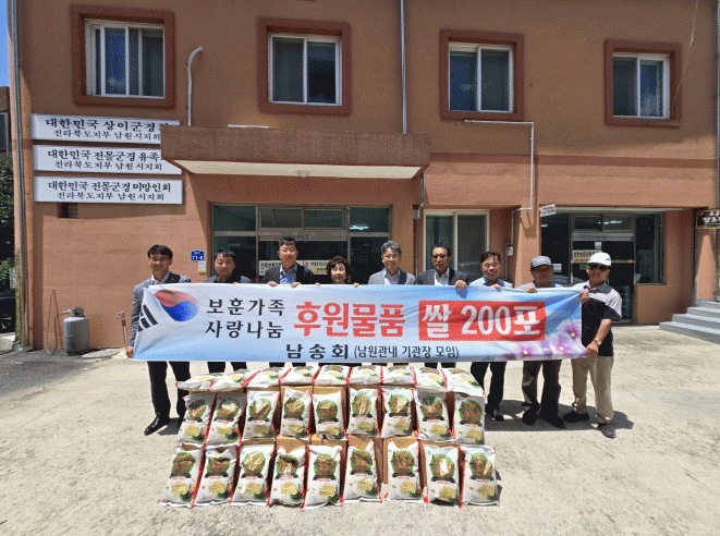 Àü´Þ½Ä¿¡´Â ³²¼Ûȸ ȸ¿øµé°ú »óÀ̱º°æÈ¸, Àü¸ô±º°æÀ¯Á·È¸ ¹× Àü¸ô±º°æ¹Ì¸ÁÀÎȸ ȸÀåÀÌ Âü¼®Çß°í, ÈÆÈÆÇÑ ºÐÀ§±â¿¡¼ ¹°Ç°À» Àü´ÞÇÏ¸ç ±¹°¡À¯°øÀÚ¿¡ ´ëÇÑ Á¸°æ°ú °¨»çÀÇ ¸¶À½À» ÀüÇß´Ù.