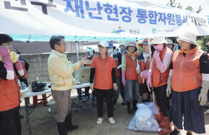 °±âÁ¤ ±¤ÁÖ½ÃÀåÀº 22ÀÏ ÁýÁßÈ£¿ì ÇÇÇØ ÇöÀåÀÎ ±¤»ê±¸ »ê¿ùµ¿, ¼±¸ ¸¶¸¤µ¿ µîÀ» ã¾Æ ħ¼ö ÇÇÇØ ¹× º¹±¸ »óȲÀ» Á¡°ËÇϰí ÁֹεéÀ» À§·ÎÇÏ´Â ÇÑÆí ÇöÀå¿¡¼ ±¸½½¶¡À» È긮´Â ÀÚ¿øºÀ»çÀÚµéÀÇ ³ë°í¿¡µµ °¨»ç Àλ縦 ÀüÇß´Ù.