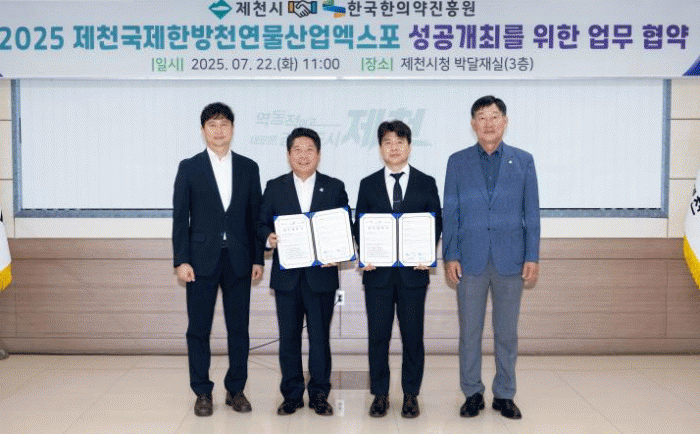Çù¾à½Ä¿¡´Â ±èâ±Ô Á¦Ãµ½ÃÀå°ú ¹Ú¿µ±â Á¦Ãµ½ÃÀÇȸ ÀÇÀå, ÀÌȵ¿ Çѱ¹ÇÑÀǾàÁøÈï¿ø ¿øÀå(Á÷¹«´ëÇà)°ú °ü°èÀÚµéÀÌ Âü¼®ÇÏ¿©, ¿¢½ºÆ÷ ¼º°ø°³ÃÖ¸¦ À§ÇÑ ÀÇÁö¸¦ ¸ð¾Ò´Ù. À̹ø Çù¾àÀº ÇÑ¹æ ¹× Ãµ¿¬¹° »ê¾÷ÀÇ ±Û·Î¹ú °æÀï·ÂÀ» ³ôÀÌ°í ¿¢½ºÆ÷¸¦ ¼º°øÀûÀ¸·Î À̲ø±â À§ÇÑ ±â¹ÝÀ» ¸¶·ÃÇÏ´Â ÀÚ¸®¿´´Ù.