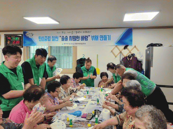 7¿ù 22ÀÏ Ã»³â»õ¸¶À»¿¬´ë ȸ¿ø 15¸íÀº ¼º³»ÃæÀε¿ ÇÒ¸Ó´Ï °æ·Î´çÀ» ¹æ¹®ÇÏ¿© ¾î¸£½Åµé 20¿©¸í°ú ÇÔ²² ³ÀŲ ¾ÆÆ® ºÎä ¸¸µé±â·Î ¿¡¾îÄÁ »ç¿ëÀ» ÁÙ¿© º¸ÀÚ´Â ¿¡³ÊÁö Àý¾à ½Çõ üÇè Ȱµ¿À» Çß´Ù.