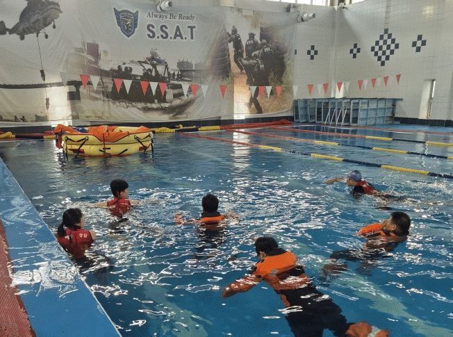 ÈÆ·ÃÀº ÁߺÎÇØ°æÃ» Ư°ø´ë ¼ö¿µÀå¿¡¼ ½Ç½ÃµÇ¸ç, ½ÇÁ¦ ÇØ»ó ±ä±ÞÂø¼ö »óȲÀ» °¡Á¤ÇØ ¡ã±¸¸í¶Â¸ñ Àü°³ ¹× ž½Â ¿ä·É ¡ãÀüº¹ ½Ã º¹¿ø ¹æ¹ý ¡ã°³Àκ° »ýÁ¸ÀÓ¹« ¼öÇà µîÀ¸·Î ±¸¼ºµÆ´Ù. ƯÈ÷ Ç×°ø±â¿ÍÀÇ 2Â÷ Ãæµ¹À» ¹æÁöÇϱâ À§ÇÑ ±¸¸í¶Â¸ñ ÀÌ°Ý ÀýÂ÷, ¼ÕÆÐµé°ú ¿À¸®¹ßÀ» ÀÌ¿ëÇÑ 50m ¼ö¿µÀå À̵¿ ÈÆ·Ã±îÁö Æ÷ÇÔÇØ ½ÇÀü¼ºÀ» ³ô¿´À¸¸ç, ÇâÈÄ ½ÇÁ¦ »óȲ¿¡ ´ëºñÇÑ ÇØ»ó¿¡¼ÀÇ ±¸¸í¶Â¸ñ ÈÆ·ÃÀ» °èȹ Áß¿¡ ÀÖ´Ù.