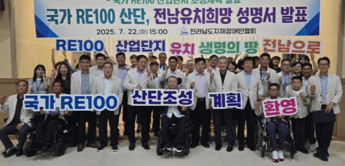 À̳¯ ¼º¸í¼ ¹ßÇ¥´Â 2¸¸ 2õ¿©¸íÀÇ È¸¿øµéÀÇ ¶æÀ» ¸ð¾Æ Àü³²Çùȸ ¹× ½Ã?±º ÁöȸÀå µî ÀÓÁ÷¿ø 50¿© ¸íÀÌ Âü¼®ÇÑ °¡¿îµ¥, Á¤ºÎ°¡ ÃßÁø ÁßÀÎ 'RE100 »ê¾÷´ÜÁö ¹× ¿¡³ÊÁö½Åµµ½Ã Á¶¼º°ú Áö¿ø¿¡ °üÇÑ Æ¯º°¹ý(°¡Äª)'À» ȯ¿µÇϸç, Àü¶ó³²µµ°¡ RE100(Renewable Energy 100%) ½ÇÇöÀ» À§ÇÑ ±¹°¡»ê¾÷´ÜÁö Á¶¼ºÀÇ ÃÖÀûÁöÀÓÀ» °Á¶Çß´Ù.