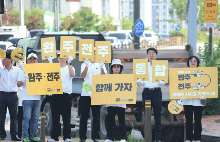 ¿ì¹ü±â ÀüÁÖ½ÃÀåÀº ¡°¿ÏÁÖ¡¤ÀüÁÖ ÅëÇÕÀº Àα¸ °¨¼Ò¿Í Áö¿ª ¼Ò¸êÀ̶ó´Â ±¸Á¶Àû À§±â¸¦ ³Ñ¾î¼³ ÇØ¹ýÀÌ µÉ °Í¡±À̶ó¸ç ¡°½Ã¹Îµé°ú ´õ¿í °¡±îÀÌ¿¡¼ ¼ÒÅëÇÏ°í °ø°¨´ë¸¦ ³ÐÇô³ª°¡µµ·Ï ³¡±îÁö ³ë·ÂÇϰڴ١±°í ¸»Çß´Ù.