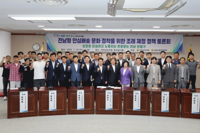 Àü¶ó³²µµÀÇȸ´Â 7¿ù 23ÀÏ ¿ÀÈÄ 2½Ã, µµÀÇȸ ÃÊÀǽǿ¡¼ ¡®Àü³²Çü ¾È½É¹è¼Û ¹®È Á¤ÂøÀ» À§ÇÑ Á¶·Ê Á¦Á¤ Á¤Ã¥Åä·Ðȸ¡¯¸¦ °³ÃÖÇß´Ù.