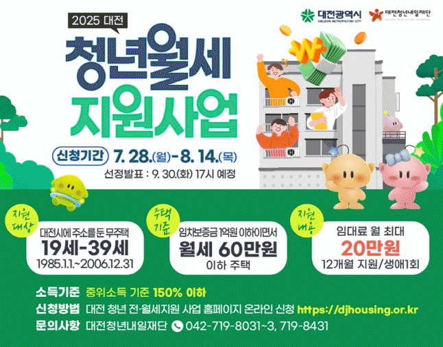 ´ëÀü½Ã´Â ¼Òµæ 60%¿Í ÀÓ´ë·á 40%¸¦ ¹Ý¿µÇÑ ÃÑÁ¡À» ±âÁØÀ¸·Î ¿ì¼±¼øÀ§¸¦ Á¤ÇØ Áö¿ø ´ë»óÀ» ¼±¹ßÇϸç, ÃÖÁ¾ ¼±Á¤ °á°ú´Â 9¿ù 30ÀÏ ¡®´ëÀü û³â Àü¡¤¿ù¼¼ Áö¿ø»ç¾÷ ȨÆäÀÌÁö¡¯¿¡ °Ô½ÃÇϰí, ¹®ÀÚ ¸Þ½ÃÁö·Îµµ °³º° Å뺸ÇÒ ¿¹Á¤ÀÌ´Ù.