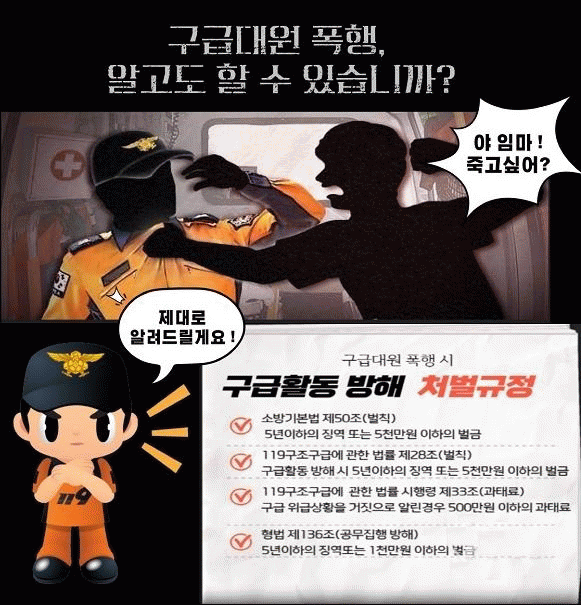 ¼Ò¹æ¼´Â ¡±ÀÀ±ÞȯÀÚ¸¦ À̼ÛÇϰųª óġÇÏ´Â °úÁ¤¿¡¼ ±¸±Þ´ë¿øÀÌ ¿å¼³, ÆøÇàÀ» ´çÇÏ´Â ÀÏÀÌ ¹Ýº¹µÇ°í ÀÖ´Ù¡°¸ç ¡±ÀÌ´Â ´ë¿øÀÇ ½ÅüÀû¡¤Á¤½ÅÀû ¾ÈÀüÀ» À§ÇùÇÒ »Ó ¾Æ´Ï¶ó, ´Ù¸¥ ȯÀÚ¿¡ ´ëÇÑ ÀÀ±Þóġ¿¡µµ ÁöÀåÀ» ÃÊ·¡ÇÑ´Ù¡°°í ¸»Çß´Ù.