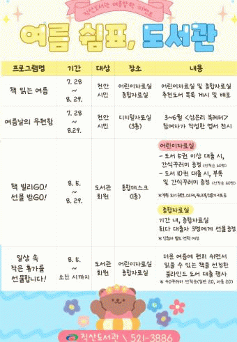 À̹ø Çà»ç¿¡¼´Â ¡ãÃßõµµ¼ ¸ñ·ÏÀ» Á¦°øÇÏ´Â ¡®Ã¥ Àд ¿©¸§¡¯ ¡ãºí¶óÀÎµå µµ¼ ´ëÃâ Çà»ç ¡®ÀÏ»ó ¼Ó ÀÛÀº ÈÞ°¡¸¦ ¼±¹°ÇÕ´Ï´Ù¡¯ ¡ãµµ¼ ´ëÃâ À̺¥Æ® ¡®Ã¥ ºô¸®GO, ¼±¹° ¹ÞGO¡¯ ¡ã»ïÀº¸® ºÏ·¹ÅÍ ¿±¼ Àü½Ã ¡®¿©¸§³¯ÀÇ ¿ìÆíÇÔ¡¯À» ÁøÇàÇÑ´Ù.