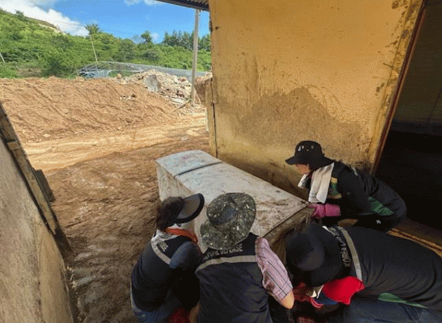 ´ë¿øµéÀº Áֹε鿡°Ô À§·Î°¡ µÉ ¼ö ÀÖµµ·Ï ¹«´õ¿î ³¯¾¾ ¼Ó¿¡¼µµ ±¸½½¶¡À» È긮¸ç ¹¬¹¬È÷ ÇÇÇØ ÇöÀåÀ» Á¤¸®Çϰí, °í·ÉÀÇ µ¶°Å³ëÀÎ °¡±¸¸¦ Áß½ÉÀ¸·Î »ýȰ ÅÍÀü º¹±¸¿¡ ÈûÀ» º¸Å¸ç Áö¿ª»çȸ¿¡ µû¶æÇÑ ¿¬´ëÀÇ ¸Þ½ÃÁö¸¦ Àü´ÞÇß´Ù.