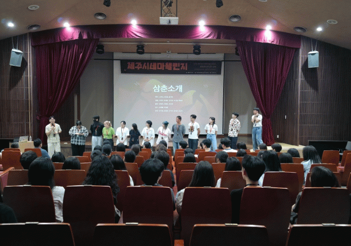 ¿µÈ Ä·ÇÁ¡®Á¦ÁÖ ½Ã³×¸¶ 縰Áö¡¯´Â Áö³ 21ÀϺÎÅÍ 24ÀϱîÁö 4Àϰ£ ºñ¼÷¹ÚÇüÀ¸·Î 15°³±³ 58¸íÀÇ ÇлýµéÀÌ Âü¿©ÇÏ¿© ¿¬Ãâ, ¿¬±â, ÃÔ¿µ, ÆíÁý µî ¿µÈ Á¦ÀÛÀÇ ÀÏ·ÃÀÇ °úÁ¤À» Á÷Á¢ üÇèÇϰí Á¦ÀÛÇÑ ¿µÈ¸¦ ¹ßÇ¥Çß´Ù.