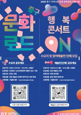 À̹ø '¹®È·Îµå Áß±¸ : ÇູÄܼƮ ¿Â(ON)'Àº ÁֹΠ´©±¸³ª Àϻ󿡼 ¹®È¸¦ ÇâÀ¯ÇÒ ¼ö ÀÖµµ·Ï ÇϰíÀÚ ÀÎõÁß±¸¹®ÈÀç´ÜÀÌ ¿ÃÇØ óÀ½ ½ÃµµÇÏ´Â ¹®È º¹ÁöÇü °ø¿¬ »ç¾÷ÀÌ´Ù.