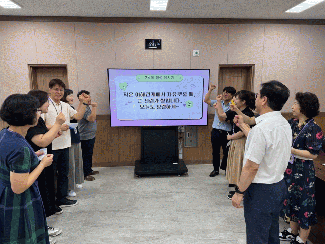 ÀÌÂùµ¿ ±³À°¿¬±¸Á¤º¸¿øÀåÀº ¡°Ã»·ÅÀº ½±°í Àç¹ÌÀÖ°Ô ½ÇõÇÒ ¼ö ÀÖ°í, ¼·Î °Ý·ÁÇÒ ¼ö ÀÖ´Â Á¶Á÷¹®È¸¦ ¸¸µå´Â °ÍÀÌ ¿ì¼±¡±À̶ó¸ç, ¡°À̹ø Çà»ç¸¦ °è±â·Î Àü Á÷¿øÀÌ Ã»·ÅÀ» Àç¹ÌÀÖ°Ô »ý°¢Çϰí, ¼·Î °Ý·ÁÇϸç ÇÔ²² ¼ºÀåÇÏ´Â ¹®È¸¦ ¸¸µé±â À§ÇØ ÀÚ¹ßÀûÀÌ°í ´Éµ¿ÀûÀ¸·Î ³ë·ÂÇØ ´Þ¶ó.¡±¶ó°í ´çºÎÀÇ ¸»À» ÀüÇß´Ù.