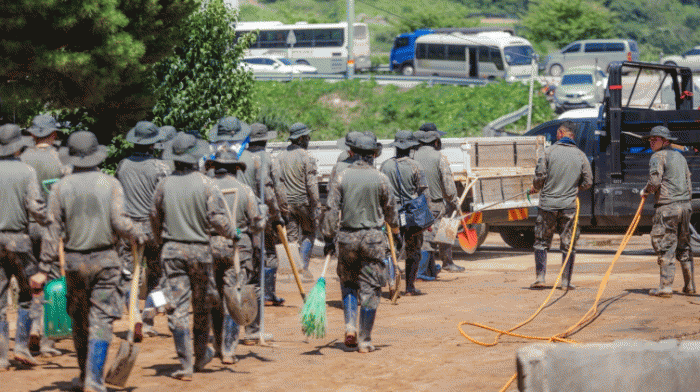 ±º À庴µéÀº µµ·Î¿¡ ½×ÀÎ Åä»ç¸¦ Á¦°ÅÇϰí, ¹°¿¡ Àá°å´ø ÁÖÅà ÁÖº¯À» Á¤¸®Çϸç, ÁֹεéÀÇ ÀÏ»ó ȸº¹À» À§ÇØ ¹ß ¹þ°í ³ª¼¹´Ù. ´õÀ§ ¼Ó¿¡¼ ÈëÅÁ¹°°ú ¶¡À¸·Î ¹ü¹÷ÀÌ µÈ À庴µéÀº »ð°ú ¸¶´ëÀڷ縦 µé°í ¹¬¹¬È÷ ÇöÀåÀ» Á¤¸®Çß´Ù.