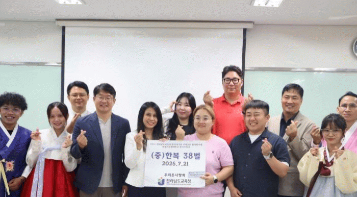 21ÀÏ ¿Õ¸³ ÇÁ³ðÆæ´ëÇб³¿¡¼ ¿¸° ÇѺ¹ ±âÁõ½ÄÀº Àü³²±³À°Ã»°ú ÀüÅëÇѺ¹ Á¦ÀÛ ´Üü ¡®¿ì¸®¿Ê»ç¶ûȸ¡¯ÀÇ Çù·ÂÀ¸·Î ÁøÇàµÆÀ¸¸ç, ȣġ¹Î½ÃÇѱ¹±³À°¿øÀÌ Çѱ¹ ¹®È È®»êÀ» À§ÇØ ÇѺ¹À» º¸°üÇÒ ¼ö ÀÖ´Â Àü¿ë Àåµµ ÇÔ²² Àü´ÞÇß´Ù.