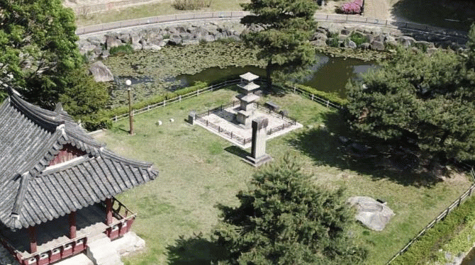 ´ÜÃþ ±â´Ü À§¿¡ 5Ãþ ž½ÅÀ» ¿Ã¸° ÇüÅÂÀ̳ª ÇöÀç ž½ÅÀÇ 2Ãþ°ú 5ÃþÀÇ ¿Á½Å¼®(è©ãóà´)ÀÌ ¾øÀ¸¸ç, »ó·ûºÎ(ßÓ×ÇÝ»)°¡ °á½ÇµÆ´Ù. ÅëÀϽŶó Èıâ ÀÌÈÄ ¾Èµ¿, ÀǼº µîÁö¸¦ Áß½ÉÀ¸·Î Àüž°ú ¸ðÀü¼®Å¾(Ù¼îôà´÷²)À» ¼¼¿ì´ø ½Ã±â¿¡ ¿µÇâÀ» ¹Þ¾Æ °Ç¸³µÆÀ» °ÍÀ¸·Î ÃßÁ¤µÇ¸ç, 1975³â ÃæÃ»ºÏµµ À¯Çü¹®ÈÀ¯»êÀ¸·Î ÁöÁ¤µÆ´Ù.