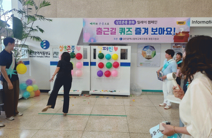 ÄûÁî´Â Á÷Àå ³» »óÈ£Á¸Áß°ú °ü·ÃµÈ ´Ù¾çÇÑ »óȲÀ» ÁÖÁ¦·Î ±¸¼ºµÆÀ¸¸ç, Á¤´äÀ» ¸ÂÃá Âü¿©ÀÚ¿¡°Ô´Â ¼ÒÁ¤ÀÇ ±â³äǰÀ» Á¦°øÇÏ¿© ÇнÀ È¿°ú¿Í Âü¿© µ¿±â¸¦ ³ô¿´´Ù.