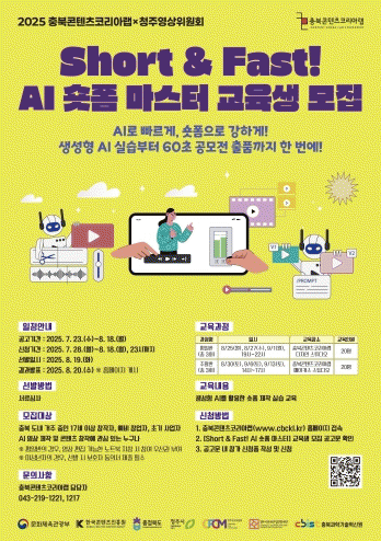 À̹ø ±³À°ÀÇ °á°ú¹°Àº ûÁÖ¿µ»óÀ§¿øÈ¸ÀÇ ¡®2025 AI 60ÃÊ ¿µ»ó °ø¸ðÀü¡¯(~10.13.)¿¡ ÃâǰÇÒ ¼ö ÀÖ¾î, âÀÛÀڵ鿡°Ô ½ÇÁúÀûÀÎ °æÇè°ú ¼º°úÀÇ ±âȸ°¡ µÉ Àü¸ÁÀÌ´Ù.