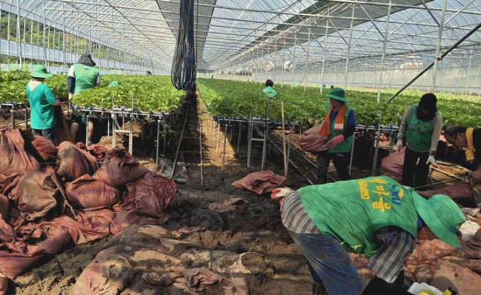 À̵éÀº ħ¼öµÈ ³ó°¡ÀÇ ÇϿ콺 ³» ÁøÈë°ú ħÀü¹° Á¦°Å, öÀç ±¸Á¶¹° ÇØÃ¼, ºñ´Ò ¹× ¾²·¹±â ¼ö°Å, µþ±â ¸ðÁ¾ ö°Å, ³ó¸· û¼Ò, ¿À¸®³óÀå ±¸Á¶ Ȱµ¿ µî ½ÇÁúÀûÀÎ º¹±¸ ÀÛ¾÷¿¡ ³ª¼¹°í, ÀϺΠÁö¿ª¿¡´Â ¹Ì´Ï Æ÷Å©·¹ÀαîÁö ÅõÀÔµÇ¾î º¹±¸ ¼Óµµ¸¦ ³ô¿´?´Ù.