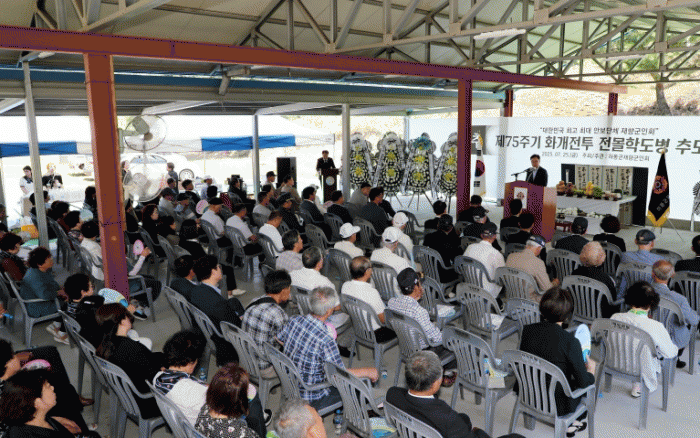 Ȱ³¸é ž¸®¿¡´Â À̵éÀÇ ¼þ°íÇÑ Èñ»ýÀ» ±â¸®´Â ¡®È°³ÀüÅõ Çеµº´ Ãß¸ð°ø¿ø¡¯ÀÌ Á¶¼ºµÇ¾î ÇöÀç 27¸íÀÇ Çеµº´ÀÌ Àáµé¾î ÀÖ´Ù.