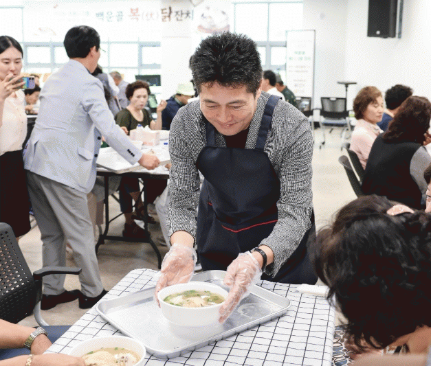 ¿µÁ¾Áö¿ª ¾î¸£½ÅµéÀÇ °Ç°ÇÑ ¿©¸§³ª±â¸¦ ±â¿øÇϰíÀÚ ¸¶·ÃµÈ À̹ø ¡®¹é¿î°ñ º¹´ßÀÜÄ¡¡¯¿¡¼´Â 600¸íÀÇ ¾î¸£½ÅÀÌ Âü¼®ÇÑ °¡¿îµ¥, »ï°èÅÁ°ú ¼ö¹Ú µî Á¦Ã¶ À½½ÄÀ» ÇÔ²² ³ª´©¸ç ÀÌ¿ô °£ÀÇ Á¤À» ÁÖ°í¹Þ´Â ¶æ±íÀº ½Ã°£À» °¡Á³´Ù.