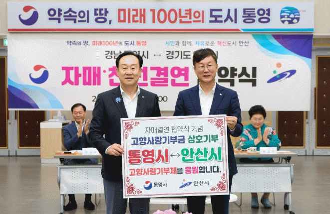 À̹α٠¾È»ê½ÃÀåÀº ¡°À̹ø ¾È»ê½Ã¿Í Å뿵½ÃÀÇ ÀڸŰῬ Çù¾àÀ» ±â³äÇϸç ÁøÇàÇÑ °íÇâ»ç¶û±âºÎ±Ý »óÈ£±âºÎ´Â ¾ÕÀ¸·Î ¾ç µµ½ÃÀÇ Ä£¸ñÀ» ´ÙÁö±â À§ÇÑ Ã¹°ÉÀ½ÀÌ µÉ °Í¡±À̶ó¸ç ¡°Áö¼ÓÀûÀÎ ±³·ù¿Í Çù·ÂÀ» ÅëÇØ ¼·Î¿¡°Ô ÈûÀÌ µÇ´Â °ü°è·Î ¹ßÀüÇØ ³ª°¡±æ ±â´ëÇÑ´Ù¡±°í ÀüÇß´Ù.