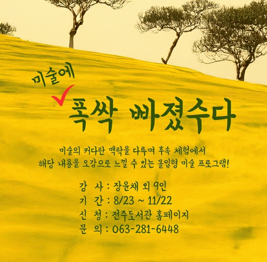 ÀÌ ÇÁ·Î±×·¥Àº ¹®ÈüÀ°°ü±¤ºÎ¿Í Çѱ¹¹®È¿¹¼úÀ§¿øÈ¸°¡ Áö¿øÇÏ´Â °ø¸ð»ç¾÷ ¡®±æ À§ÀÇ Àι®ÇС¯ÀÇ ÀÏȯÀ¸·Î, ½¬¿ì¸é¼µµ Èï¹Ì·Î¿î ¹Ì¼ú ÁÖÁ¦¸¦ Áß½ÉÀ¸·Î ±¸¼ºµÈ Àι®¿¹¼ú ÇÁ·Î±×·¥ÀÌ´Ù.