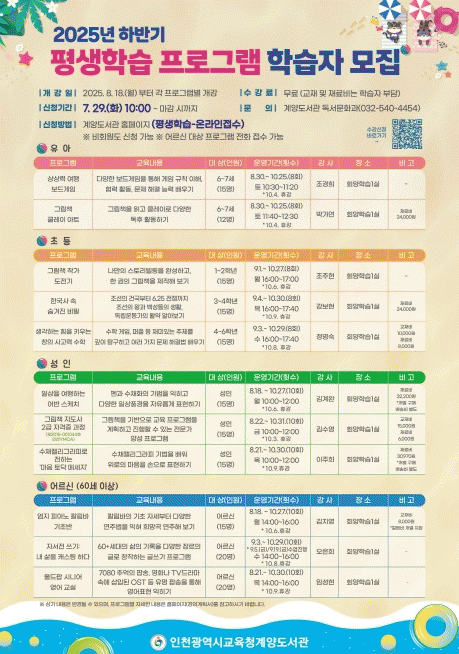 À̹ø ÇÁ·Î±×·¥Àº 8¿ù 18ÀϺÎÅÍ 10¿ù 31ÀϱîÁö ¿î¿µµÇ¸ç ¡âÀ¯¾Æ ´ë»ó ¡®±×¸²Ã¥ Ŭ·¹ÀÌ ¾ÆÆ®¡¯, ¡®»ó»ó·Â ¿©Çà º¸µå°ÔÀÓ¡¯ ¡âÃÊµî ´ë»ó ¡®±×¸²Ã¥ ÀÛ°¡ µµÀü±â¡¯ µî 3°³ °Á ¡â¼ºÀÎ ´ë»ó ¡®ÀÏ»óÀ» ¿©ÇàÇÏ´Â ¾î¹Ý½ºÄÉÄ¡¡¯ µî 3°³ °Á ¡â¾î¸£½Å ´ë»ó ¡®¾öÁö ÇǾƳë Ä®¸²¹Ù ±âÃʹݡ¯ µî ÃÑ 11°³ °Á¸¦ ¸¶·ÃÇØ Àб⡤¾²±â¿Í ¹®È¿¹¼úÀ» ¾Æ¿ì¸£´Â ½Ç¿ëÀûÀÎ ³»¿ëÀ¸·Î ±¸¼ºÇß´Ù.