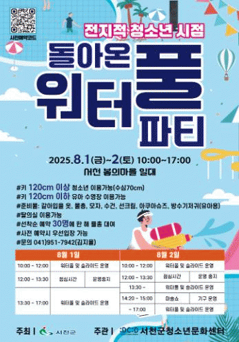 Âü°¡ÀÚµéÀº ¿öÅÍÇ®°ú ½½¶óÀ̵å ÀÌ¿ë, ¹°ÃÑ ´ë¿© ¹× , û¼Ò³âµéÀÌ Á÷Á¢ ±âȹÇÑ ¹°ÃÑ¡¤¹°Ç³¼± À̺¥Æ®¿¡ ¹«·á·Î ÀÚÀ¯·Ó°Ô Âü¿©ÇÒ ¼ö ÀÖ´Ù.