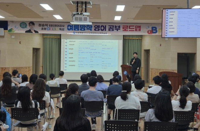 Áö³ 7¿ù 22ÀÏ¿¡ ÁøÇàµÈ 1Â÷ Ư°¿¡¼´Â Áß¡¤°íµîÇлý ¹× Çкθð 80¸íÀ» ´ë»óÀ¸·Î, EBS ¿µ¾î¿µ¿ª °»ç·Î Ȱµ¿ ÁßÀÎ Á¤½ÂÀÍ °»ç¸¦ ÃÊûÇÏ¿© ¡®¿©¸§¹æÇÐ ¿µ¾î °øºÎ ·Îµå¸Ê¡¯À» ÁÖÁ¦·Î °¿¬À» ÁøÇàÇß´Ù.