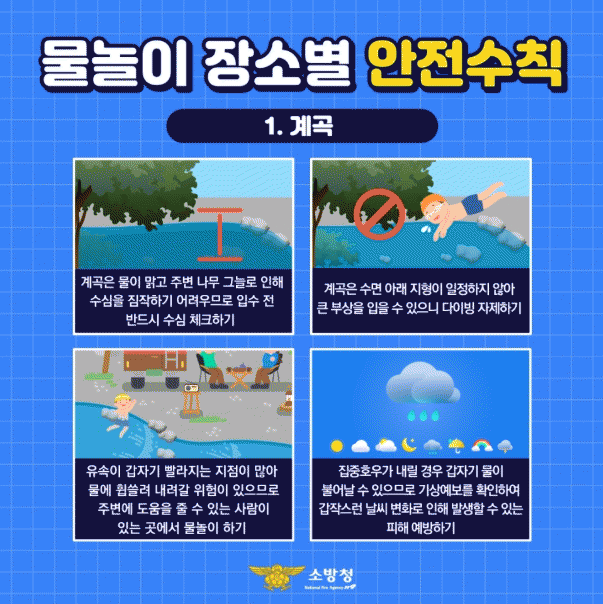 ¼Ò¹æ¼¿¡ µû¸£¸é ¿©¸§Ã¶¿¡´Â ´õÀ§¸¦ ÇÇÇÏ°í ¾ß¿ÜȰµ¿À» Áñ±â±â À§ÇØ °è°î, ÇÏõ µîÀ» ã´Â ÀÎÆÄ°¡ ´Ã¾î³ª ¹°³îÀÌ »ç°í À§Çèµµ ÇÔ²² Áõ°¡ÇÑ´Ù. ƯÈ÷ ÃÖ±Ù Æø¿ì·Î ÀÎÇØ ÇÏõ ¼öÀ§°¡ ±Þ°ÝÈ÷ »ó½ÂÇϰí À¯¼ÓÀÌ »¡¶óÁö¸é¼ ¼ö³»ç°í À§ÇèÀÌ ´õ¿í Ä¿Áø »óȲÀÌ´Ù.