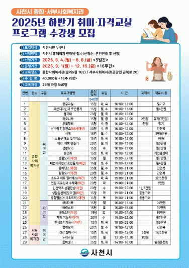 »çõ ½Ã¹ÎÀÌ¸é ´©±¸³ª Âü¿©ÇÒ ¼ö ÀÖÀ¸¸ç, »çõ½Ãû ȨÆäÀÌÁö¸¦ ÅëÇØ ½ÅûÇÏ¸é µÈ´Ù. 65¼¼ ÀÌ»ó ¾î¸£½ÅÀº ¹æ¹® ¶Ç´Â ÀüÈ ½ÅûÀÌ °¡´ÉÇÏ´Ù.