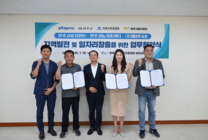 À̳¯ Çù¾à½Ä¿¡¼´Â ¿ÏÁÖ°í¿ëÁö¿ø´Ü, ¿ÏÁÖ±º±Í³ó±ÍÃÌÁö¿ø¼¾ÅÍ, ¢ß¿¹ÃµF&B µî 3°³ ±â°ü°ú ±â¾÷ÀÌ Çù¾àÀ» ü°áÇϰí, ±Í³ó±ÍÃÌÀÎÀÇ ÀÏÀÚ¸® ¿¬°è¿Í ³ó»ê¹° °è¾àÀç¹è È®´ë, Áö¿ª »ê¾÷ Ȱ¼ºÈ¸¦ À§ÇØ »óÈ£ Çù·ÂÇØ ³ª°¡±â·Î Çß´Ù.