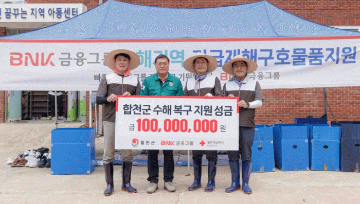 BNK±ÝÀ¶±×·ìÀº ¼öÇØ ÁֹεéÀÇ »ýȰ ¾ÈÁ¤°ú Áö¿ª º¹±¸¸¦ À§ÇØ ¼º±Ý 1¾ï ¿øÀ» ÇÕõ±º¿¡ Àü´ÞÇß´Ù. ¼º±Ý Àü´Þ½Ä¿¡´Â ±èÀ±Ã¶ ÇÕõ±º¼ö°¡ Á÷Á¢ Âü¼®ÇØ BNK ÀÓÁ÷¿øµéÀ» ¸ÂÀÌÇÏ°í °¨»ç¸¦ ÀüÇß´Ù.