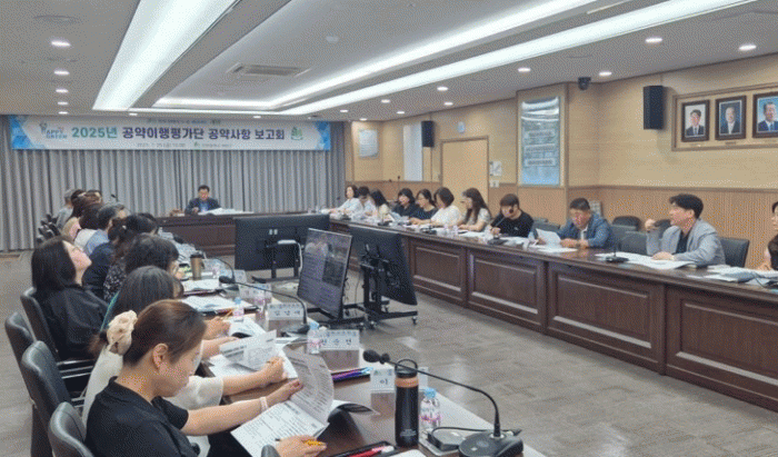 À̳¯ º¸°íȸ¿¡´Â °ü°è °ø¹«¿ø°ú °ø¾àÆò°¡´Ü 50¿© ¸íÀÌ Âü¼®ÇØ °ø¾à ÀÌÇà ÇöȲ°ú º¯°æ»çÇ×À» ¼³¸íÇϰí ÁúÀÇÀÀ´ä°ú Àǰ߼ö·Å ½Ã°£À» °¡Á³´Ù.