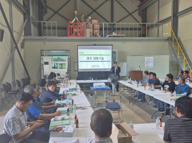 À̹ø ±³À°Àº »ç°ú´ëÃ߸¦ Àç¹è ÁßÀ̰ųª °ü½É ÀÖ´Â ³ó¾÷ÀÎ 50¿© ¸íÀÌ Âü¼®ÇÑ °¡¿îµ¥, ±¹³» ´ëÇ¥ÀûÀÎ ´ëÃß ÁÖ»êÁö º¸Àº±º¿¡¼ ´ëÃß Àç¹è±â¼úÀ» Àü¹®ÀûÀ¸·Î Áöµµ¡¤±³À°Çϰí ÀÖ´Â ³ó¾÷±â¼ú¼¾ÅÍ ±Ç¿µÁØ ÆÀÀåÀ» °»ç·Î ÃÊûÇÏ¿© ±³À°À» ÁøÇàÇß´Ù.