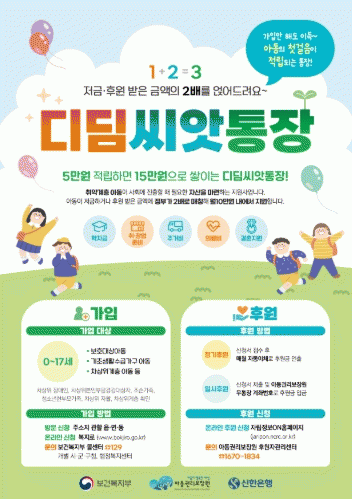 µðµõ¾¾¾ÑÅëÀåÀº Ãë¾à°èÃþ ¾Æµ¿ÀÇ ÀÚ»êÇü¼º Áö¿ø»ç¾÷À¸·Î ¾Æµ¿ º»ÀÎ ¹× º¸È£ÀÚ, ¶Ç´Â ÈÄ¿øÀÚ°¡ ÀÏÁ¤ ±Ý¾×À» Àû¸³Çϸé Á¤ºÎ°¡ Àû¸³±Ý¾×ÀÇ 1:2 ºñÀ²·Î ¸ÅÄªÇØ ¿ù ÃÖ´ë 10¸¸¿ø ³»¿¡¼ Áö¿øÇÑ´Ù.