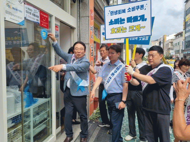 ÇöÀå¿¡ ³ª°£ Ȳ±Ôö ¿Áõ±º¼ö´Â ¡°°í¹°°¡¡¤°í±Ý¸® µîÀ¸·Î ¾î·Á¿òÀÌ °¡Áߵǰí ÀÖ´Â °¡¿îµ¥ Á¤ºÎÀÇ ¼ÒºñÄíÆùÀÌ Áö¿ª »ó±Ç¿¡ Ȱ·ÂÀ» ºÒ¾î³Ö°í ÀÖ´Ù´Â Á¡À» ÇöÀå¿¡¼ È®ÀÎÇÒ ¼ö ÀÖ¾ú´Ù¡±¸ç¡°±º¹Î ¿©·¯ºÐ²²¼µµ Àû±ØÀûÀ¸·Î ¼ÒºñÄíÆùÀ» »ç¿ëÇØÁÖ¼Å¾ß ¼Òºñ Ȱ¼ºÈÀÇ ¼±¼øÈ¯ ±¸Á¶°¡ ÀÚ¸®Àâ°í Áö¿ª°æÁ¦ ȸº¹¿¡ ±â¿©ÇÒ ¼ö ÀÖ´Ù¡±°í ¸»Çß´Ù.