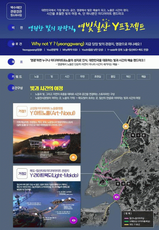 »ç¾÷³»¿ëÀº ¹é¼öÇØ¾Èµµ·Î¸¦ Áß½ÉÀ¸·Î °æ°üÀÚ¿ø°ú ¹®ÈÄÜÅÙÃ÷¸¦ Áý¾à¡¤°ÈÇÏ´Â »ç¾÷À¸·Î ¡ãÇØ¾È °æ°ü ÀÎÇÁ¶ó È®Ãæ ¡ã³ëÀ»Àü½Ã°ü ¸®¸ðµ¨¸µ ¹× ¹Ìµð¾îÆÄ»çµå Á¶¼º ¡ãÄ¥»êŸ¿ö¿Í ¸ñµµ¸¦ ÀÕ´Â ¹Ìµð¾î¶óÀÌÆ® ¿¬Ãâ µîÀ» ÅëÇØ ¿µ±¤±ºÀ» ü·ùÇü °ü±¤µµ½Ã·Î Å»¹Ù²Þ½ÃŰ´Â °ÍÀ» ¸ñÇ¥·Î ÇÑ´Ù.
