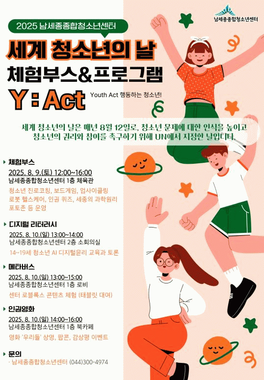 ¿ÃÇØ ÁÖÁ¦´Â ¡®Áö¼Ó°¡´ÉÇÑ ¹ßÀü¸ñÇ¥¿Í ±× ³Ê¸Ó¸¦ À§ÇÑ Áö¿ª û¼Ò³â Çൿ¡¯À¸·Î, ³²¼¼Á¾Á¾ÇÕû¼Ò³â¼¾ÅÍ´Â ÀÌ¿¡ ¸ÂÃç ´Ù¾çÇÑ Ã¼Çè ¹× È°µ¿ ÇÁ·Î±×·¥À» ÁøÇàÇÑ´Ù.