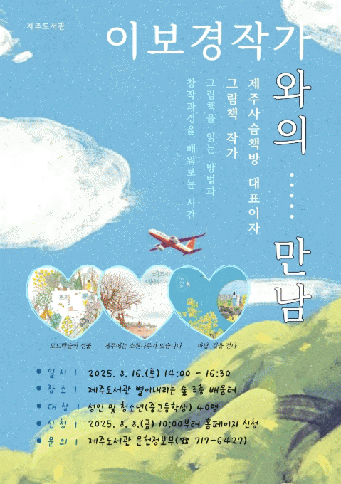 À̺¸°æ ÀÛ°¡´Â¡®Á¦ÁÖ¿¡´Â ¼Ò¿ø³ª¹«°¡ ÀÖ½À´Ï´Ù, ¸ðµå¶ô½£ÀÇ ¼±¹°, ¹Ù´ç, ±æÀ» °È´Ù¡¯µî Á¦ÁÖÀÇ ÀÚ¿¬°ú ¹®È¸¦ ´ãÀº ±×¸²Ã¥À» ÅëÇØ µ¶Àڵ鿡°Ô µû¶æÇÑ °¨¼º°ú ±íÀº ¿©¿îÀ» ÀüÇØ¿Â ÀÛ°¡ÀÌ´Ù.
