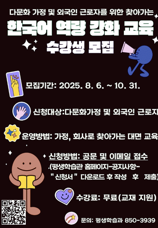 ƯÈ÷ ¿Ü±¹ÀÎ ±Ù·ÎÀÚ¿Í ´Ù¹®È °¡Á¤ÀÇ Áõ°¡¿Í ´õºÒ¾î Çѱ¹¾î ±³À°¿¡ ´ëÇÑ ¼ö¿ä°¡ ³ô¾ÆÁö´Â °¡¿îµ¥, ½ÇÈ¿¼º ÀÖ´Â ÇöÀå Á᫐ ±³À°À» ÅëÇØ Âü¿©ÀÚµéÀÇ ÃæÁֽùÎÀ¸·Î¼ÀÇ Á¤Ã¼¼º°ú ÀÚ±à½ÉÀ» Ű¿ö³ª°¥ ¼ö ÀÖµµ·Ï Àû±Ø Áö¿øÇÒ ¿¹Á¤ÀÌ´Ù.